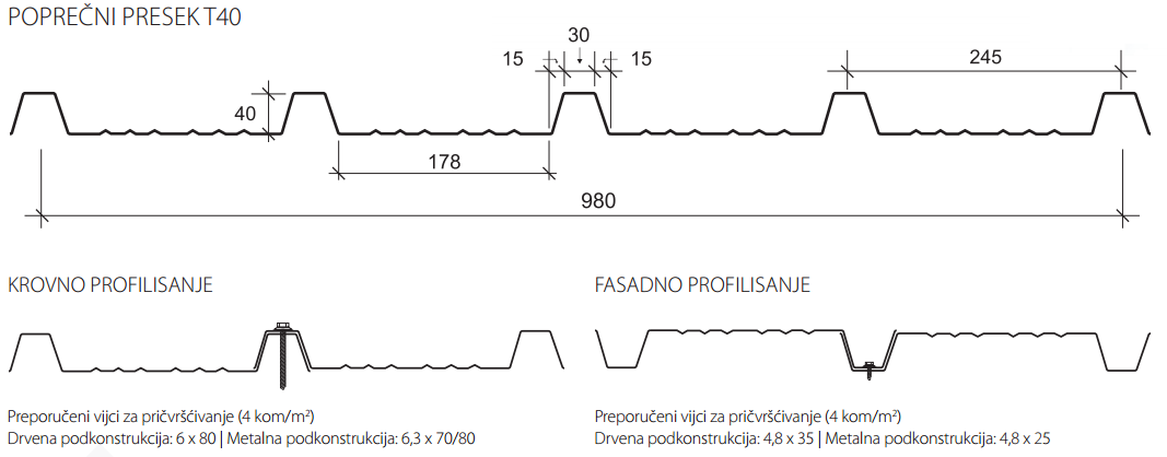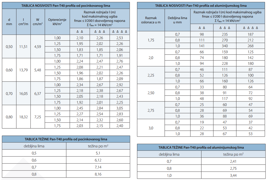 Pan T40 profilisani lim dubine rebra od 40 mm je najprodavaniji proizvod iz grupe krovnih pokrivača. Za to je zaslužan odličan balans izmedju nosivosti, težine i cene što ovom profilu daje široku primenu. Može se koristiti i za oblaganje fasada. Ovaj proizvod se može izraditi od pocinkovanog i aluminijumskog lima.