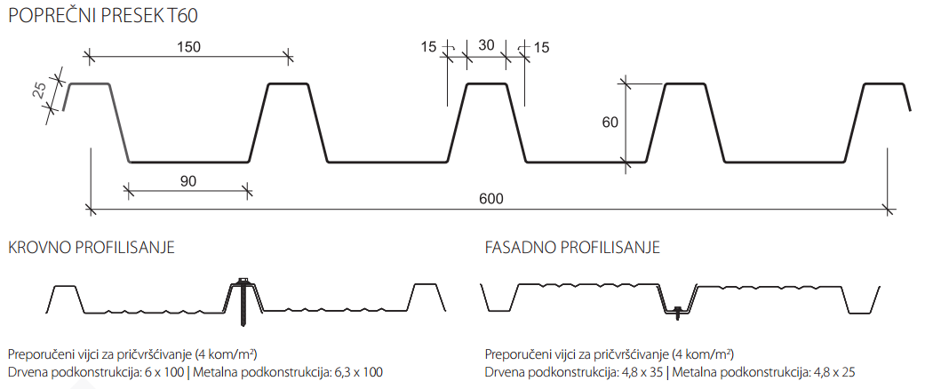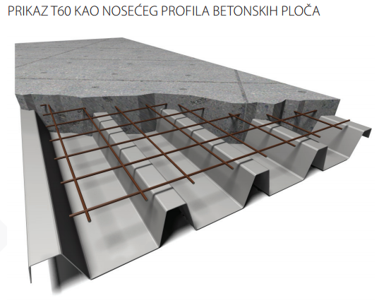 Pan T60 is profiled sheet depth of 60 mm and has the strength to bridge the span of over 4 meters. It can also be used as a carrying channel concrete slab or as a component of X Pan sandwich system. This product can be made of galvanized sheet and aluminum sheet.