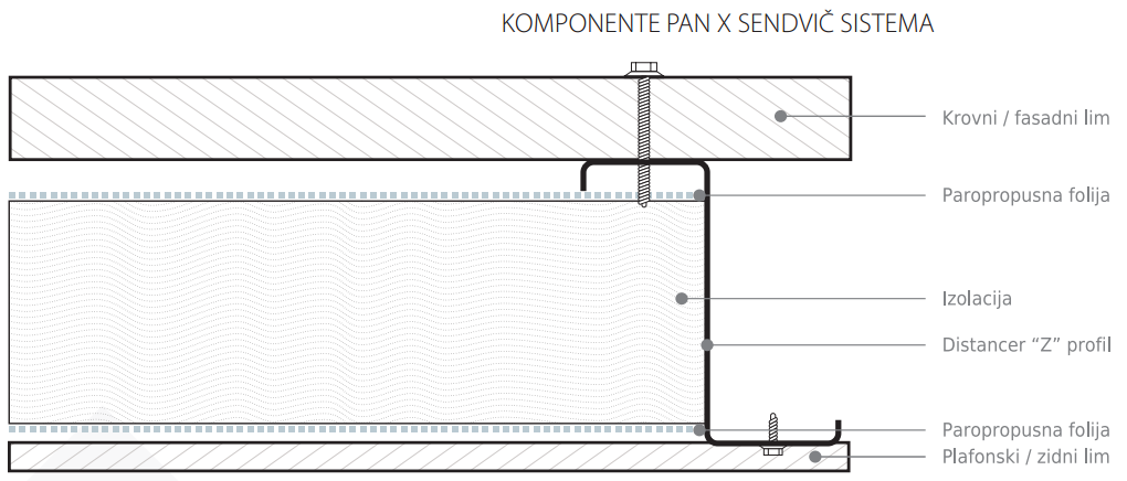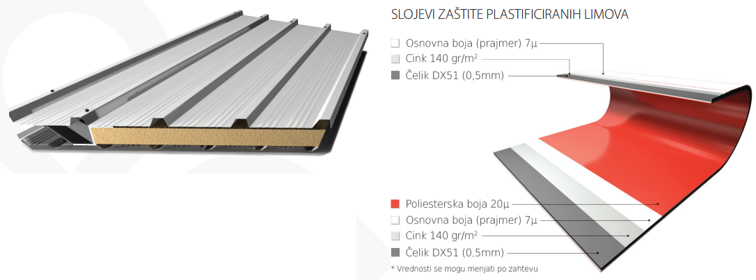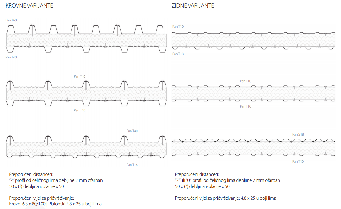 Corrugated sheets can be combined as a sandwich roofing system with insulating layers such as mineral wool or stioropor, with two layers of tin-roof a ceiling or wall-facade of the building. Pan X is installed on site and is an efficient and economical solution to building insulation. This roofing system can be applied to roofs and facades. This product can be made of galvanized sheet and aluminum sheet. The color palette, capacity and weight depends on the choice of metal sheet.
